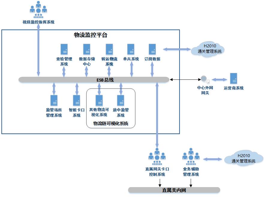 2、 外聯(lián)網(wǎng)端:運(yùn)輸工具信息管理、監(jiān)管場所管理、輔助通關(guān)管理、數(shù)據(jù)交換、系統(tǒng)管理